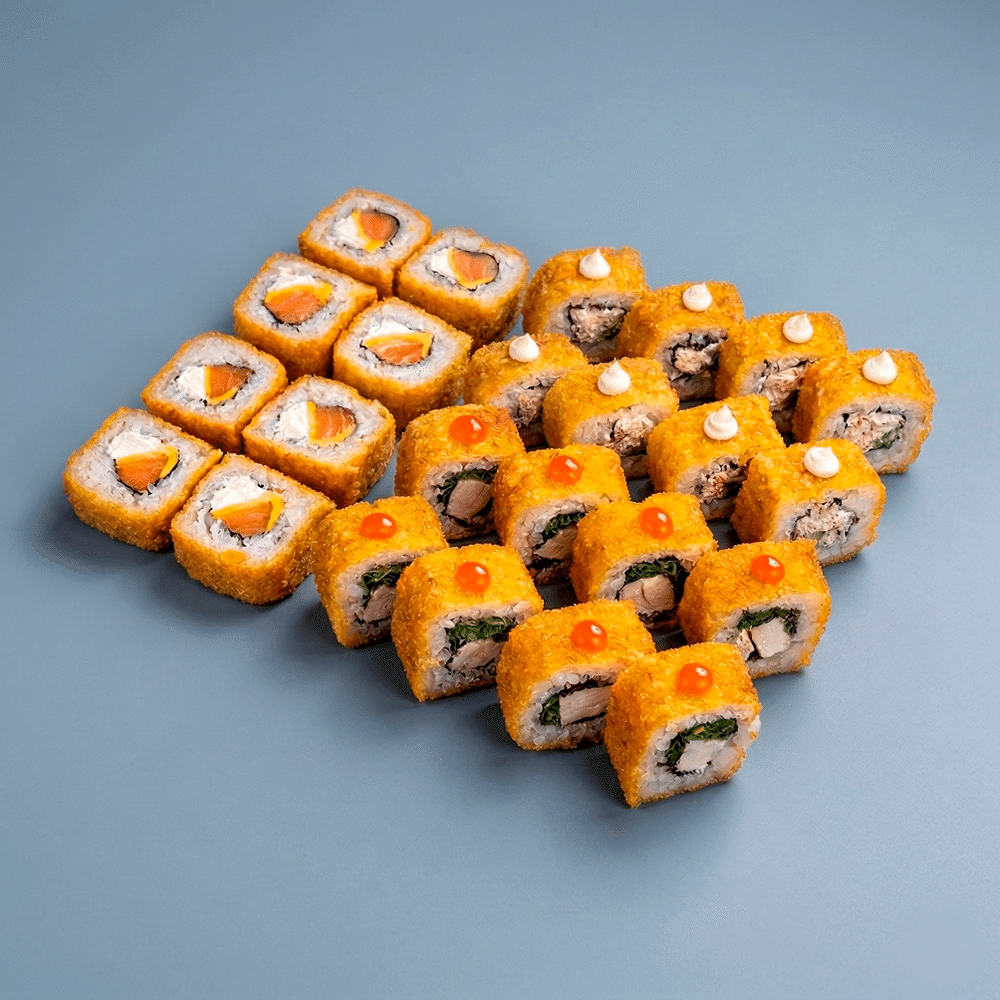 Дубль чиз 8 шт, Тори темпура 8 шт, Кани темпура 8 шт.