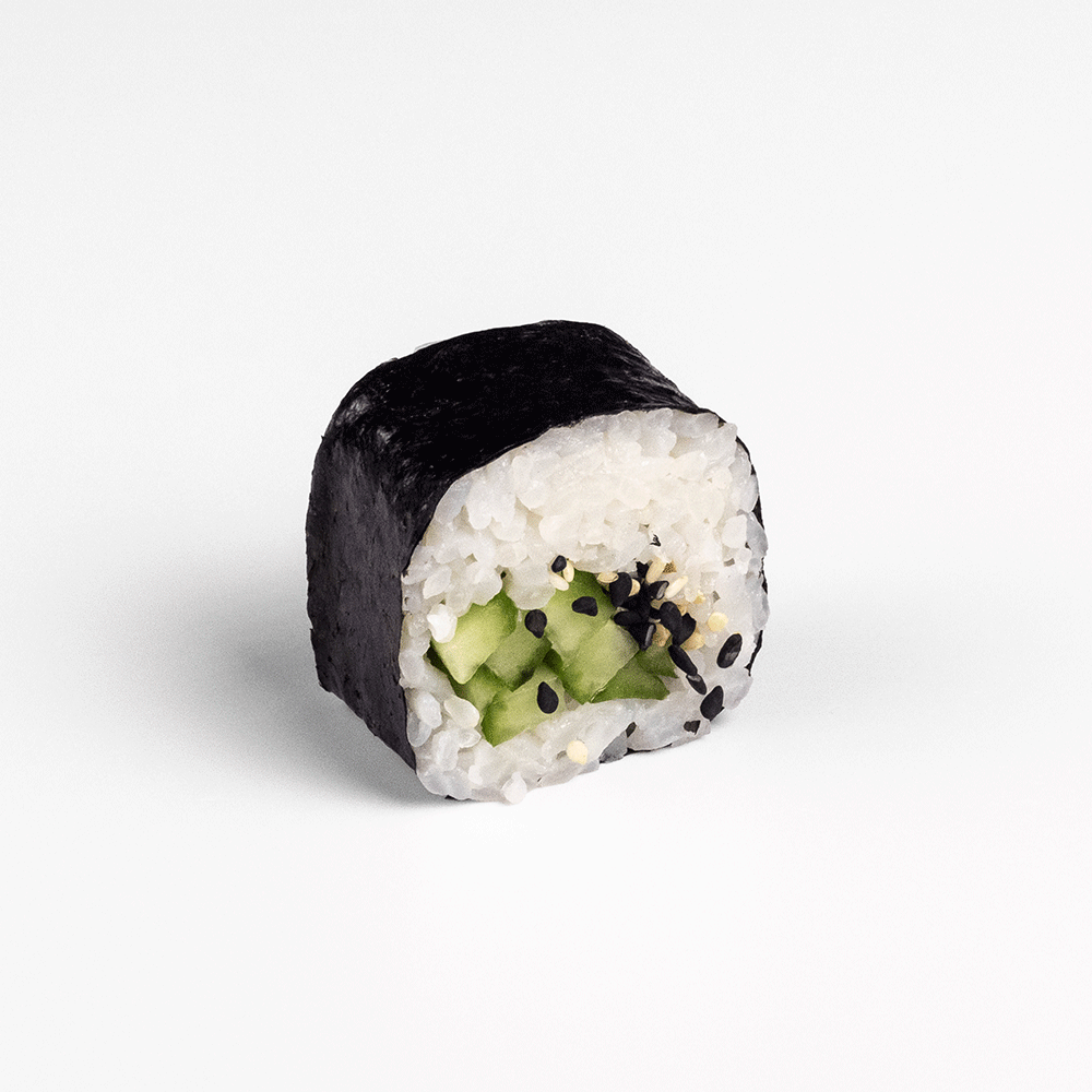 Огурец, семена кунжута, нори.