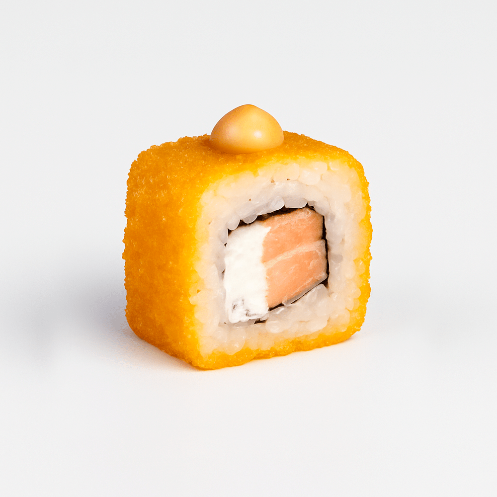Жаренный ролл с лососем и соевым айоли