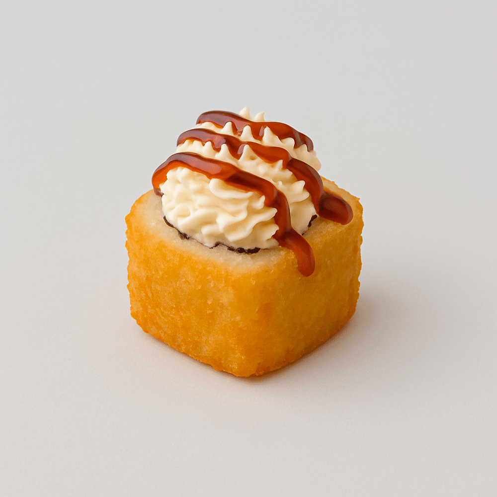 Лосось, снежный краб, сливочный сыр, сухари панко, соус унаги, нори.