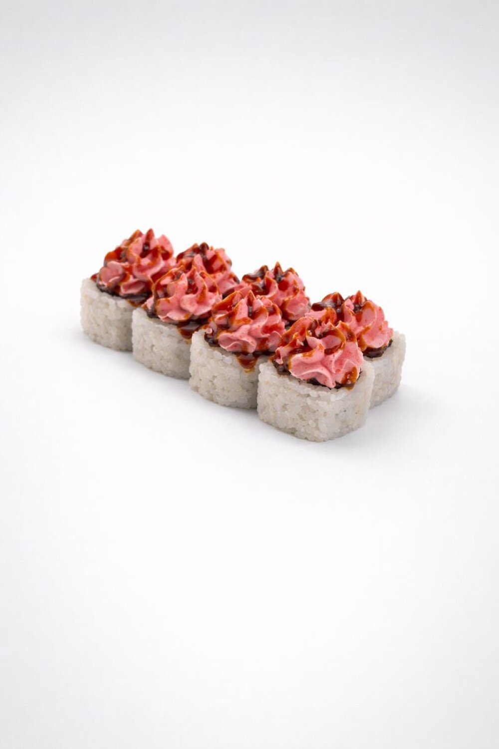 Лосось горячего копчения, сливочный сыр, соус унаги, лава шапка.